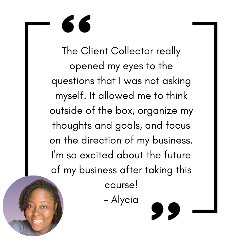 But you don’t need hours upon hours to put this together. The Client Collector™ system is a 5-day framework for easy implementation, even if you only have a couple of hours in the evening after the kids go to bed. You got this!