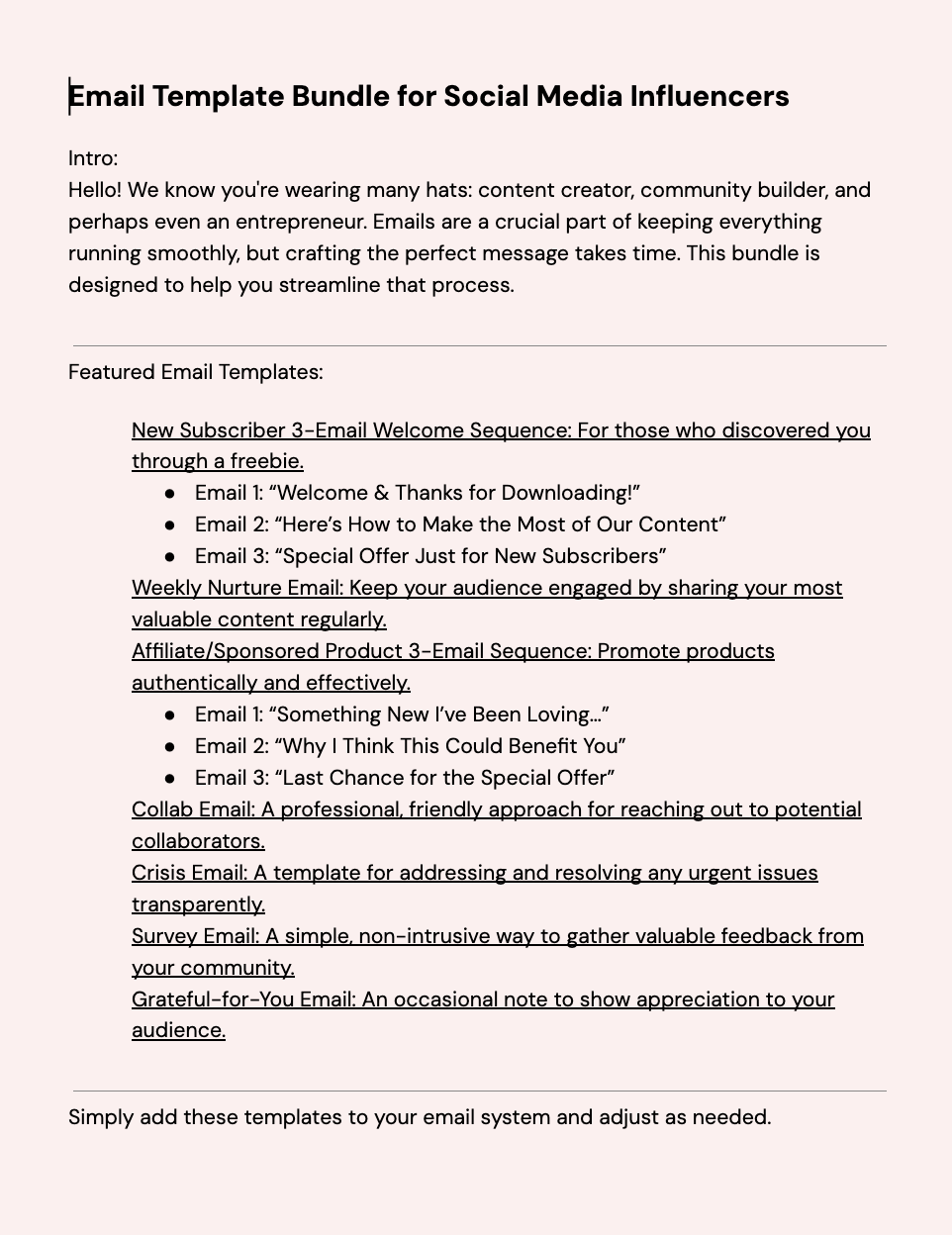 Email Template Bundle for Influencers
